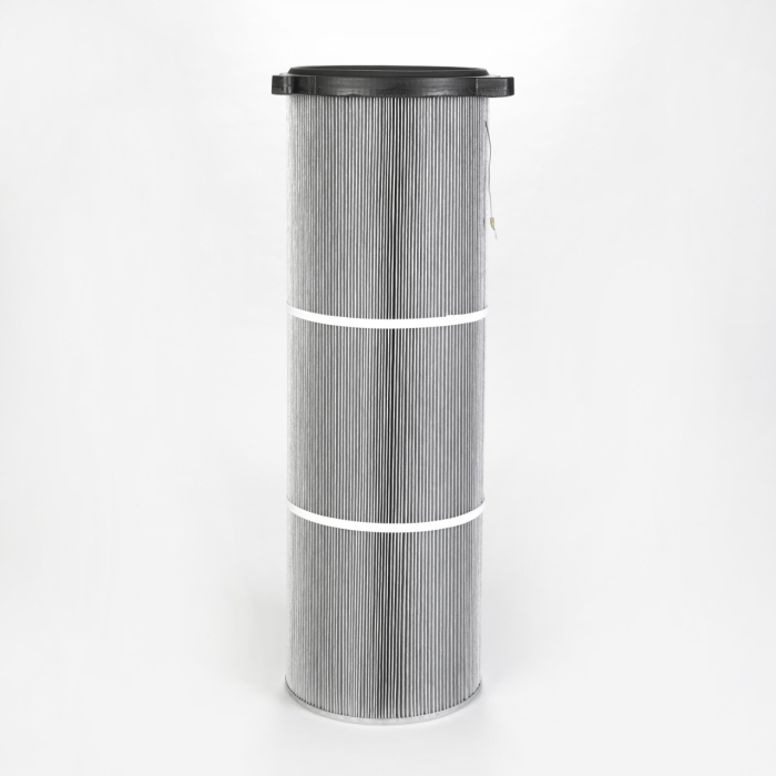 Cartridge Filter with open top end cap with 3 hooks, 160 mm pitch diameter and closed bottom end cap in Polyester Spunbond Anti-Static, 125 mm outer diameter x 1215 mm long including top gasket; Special features: Dirty Air Plenum installation and earthed for Quick Fix and other brands of cartridge collectors